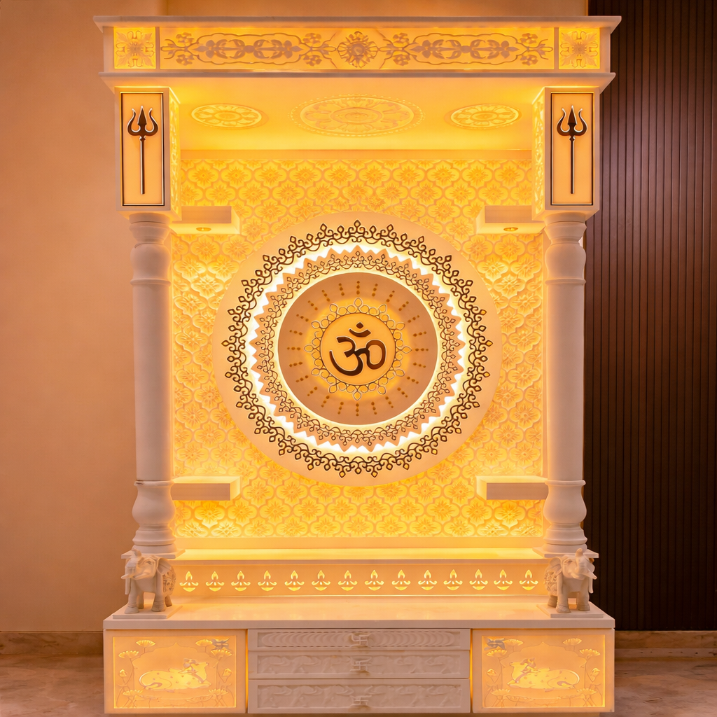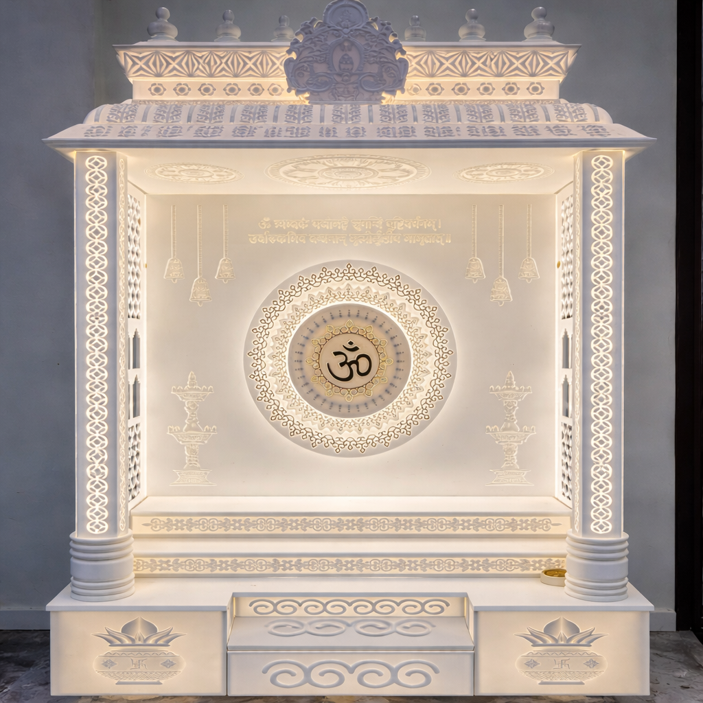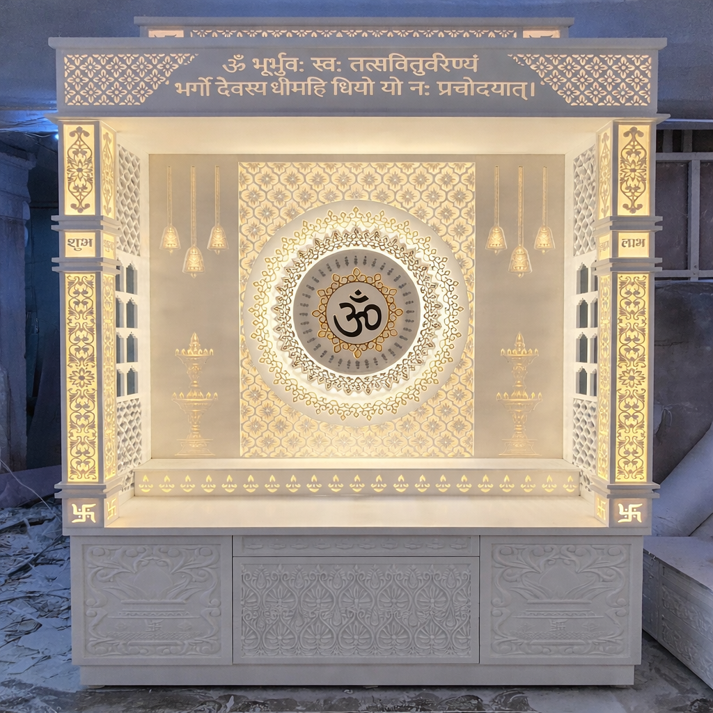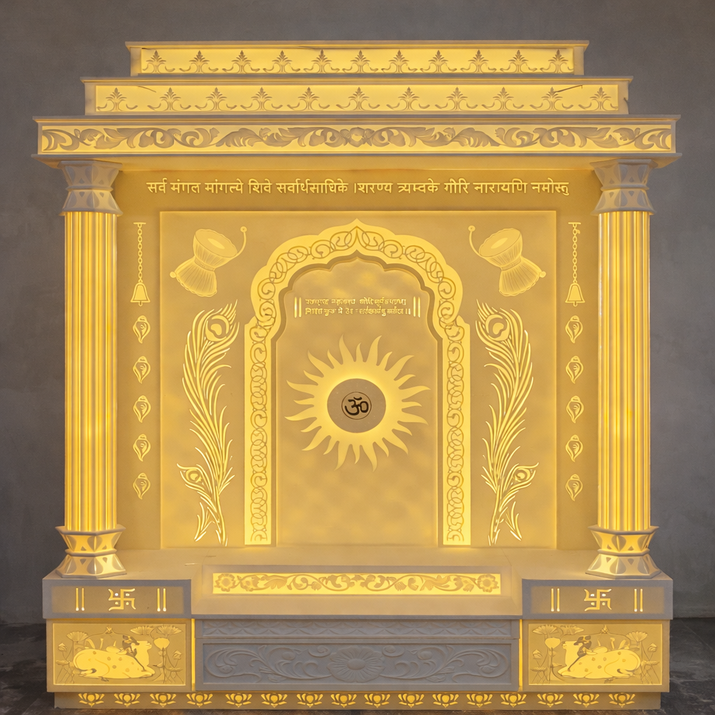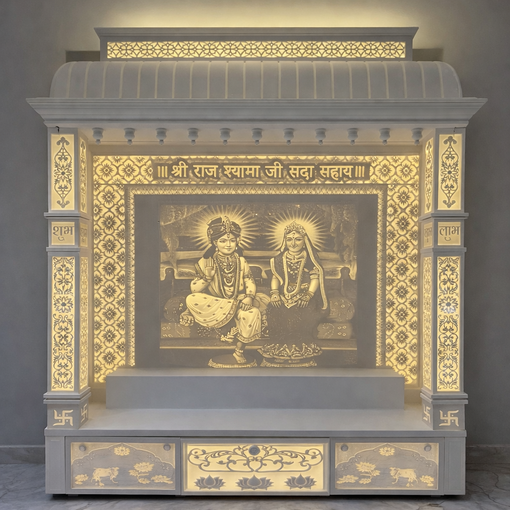 High-quality Corian mandir crafted with advanced machinery and skilled artisans.