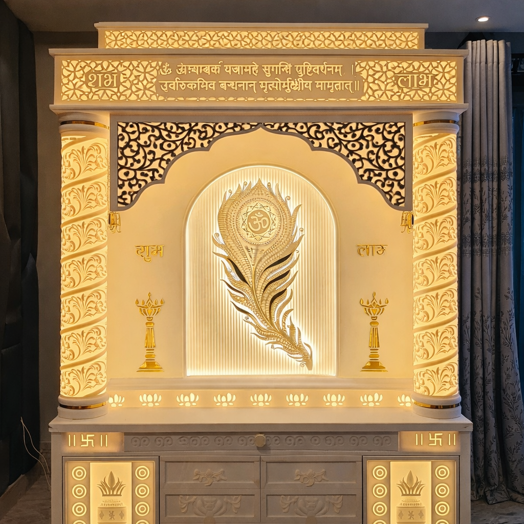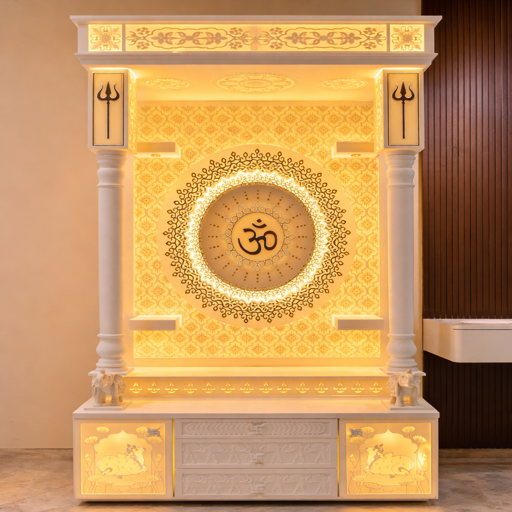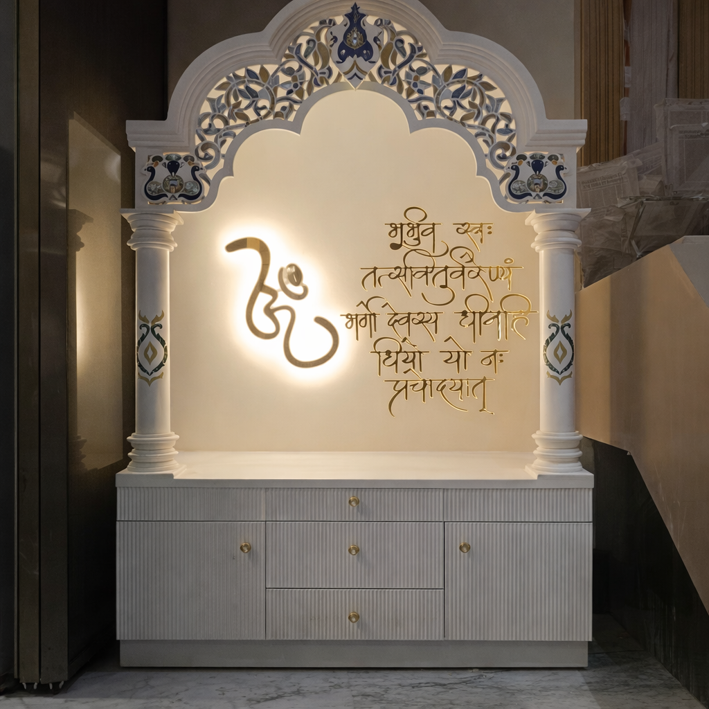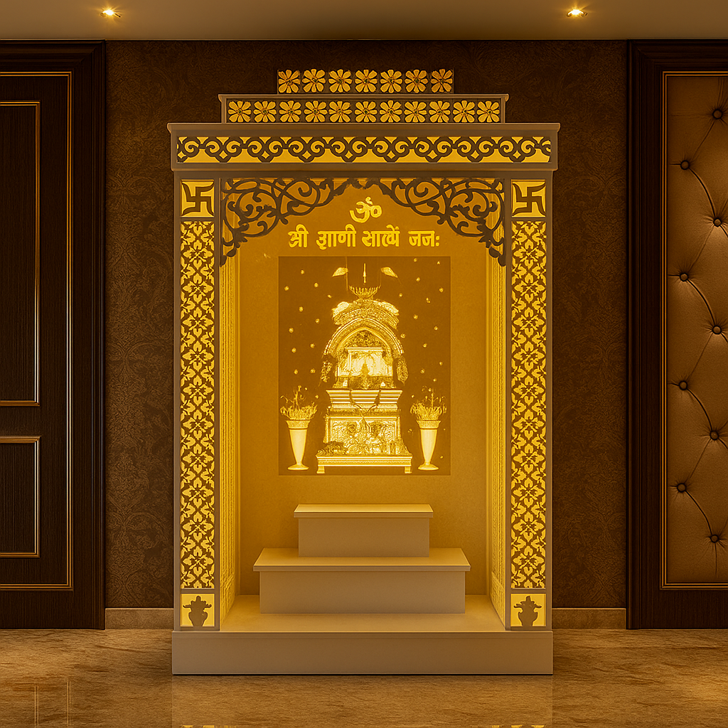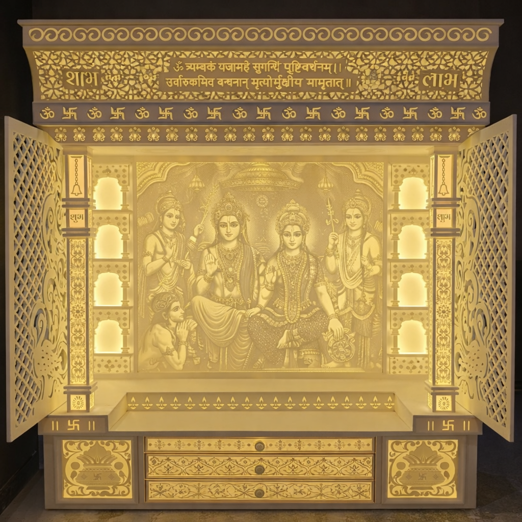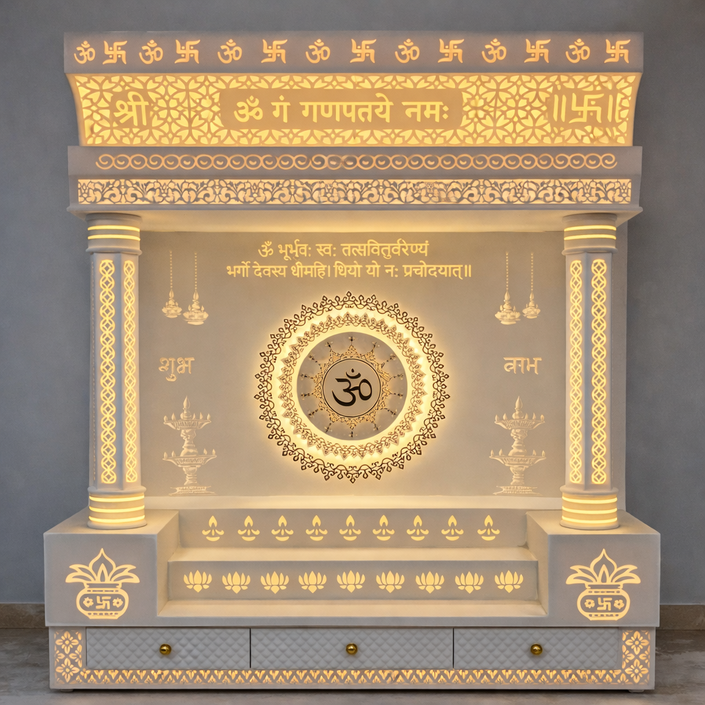 High-quality Corian mandir crafted with advanced machinery and skilled artisans.