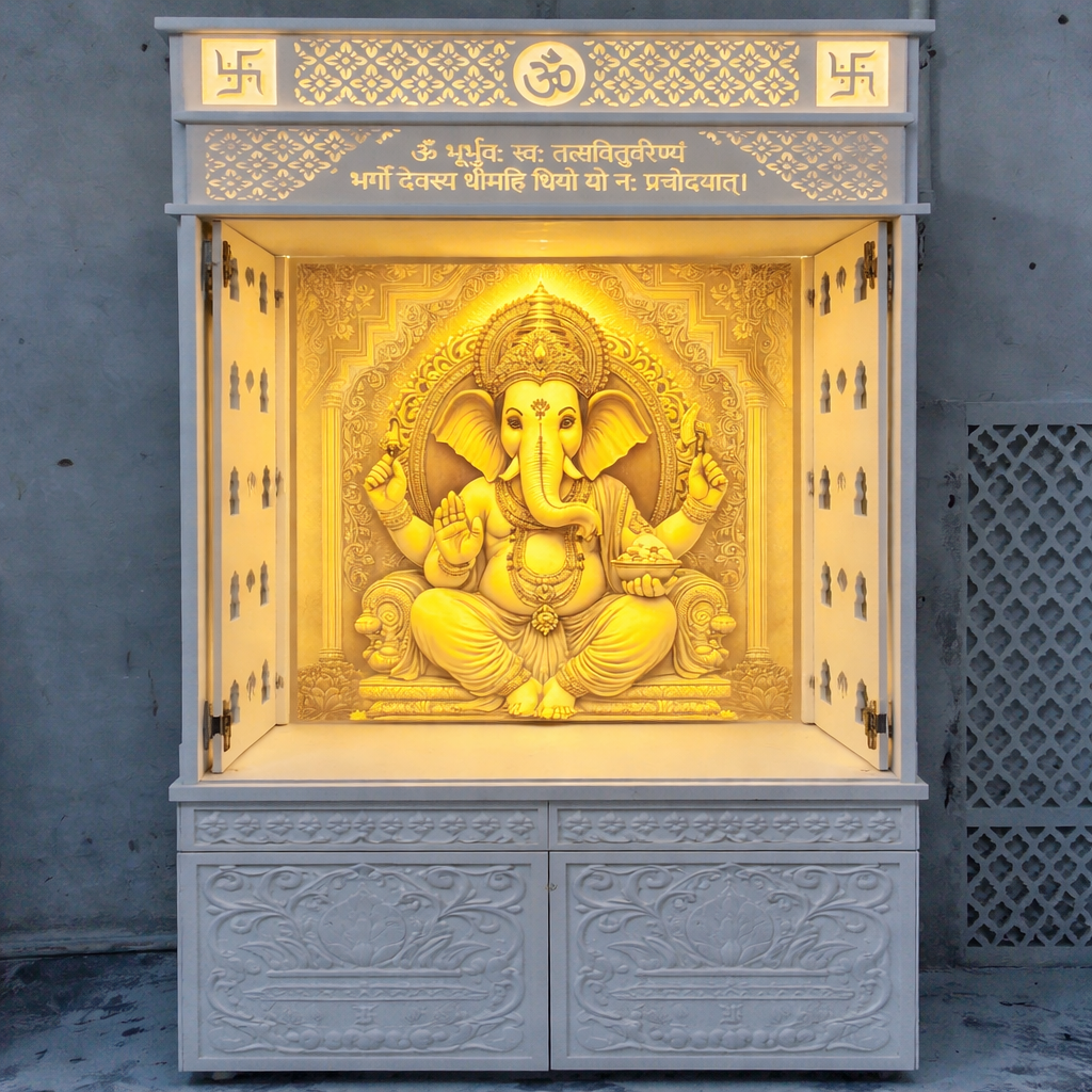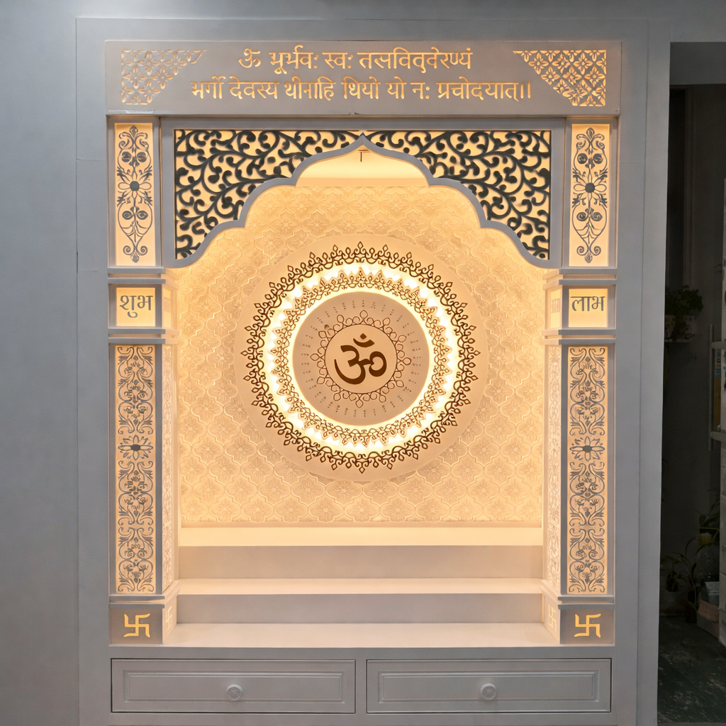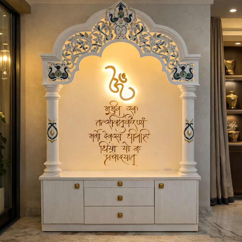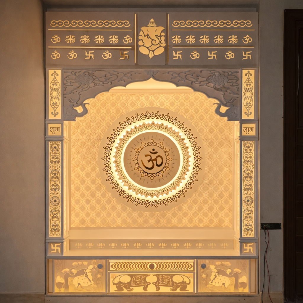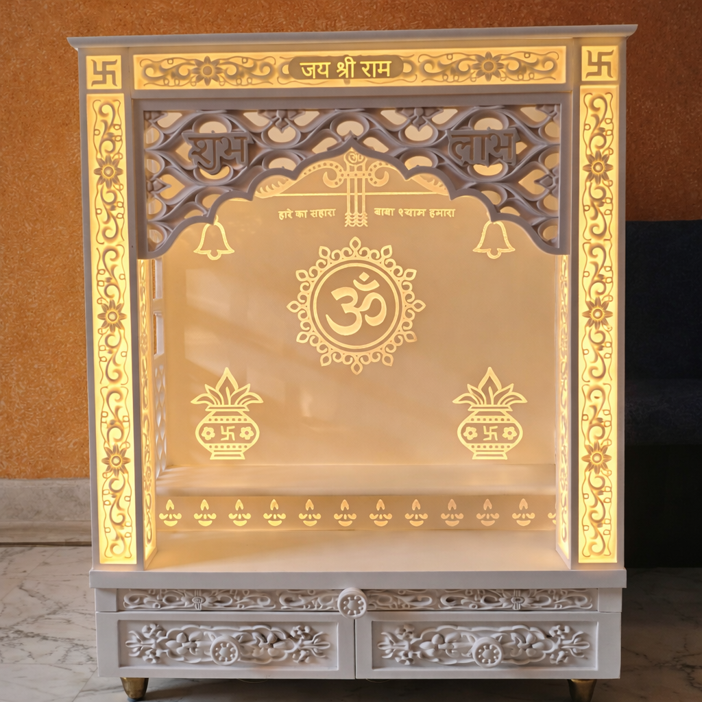 High-quality Corian mandir crafted with advanced machinery and skilled artisans.